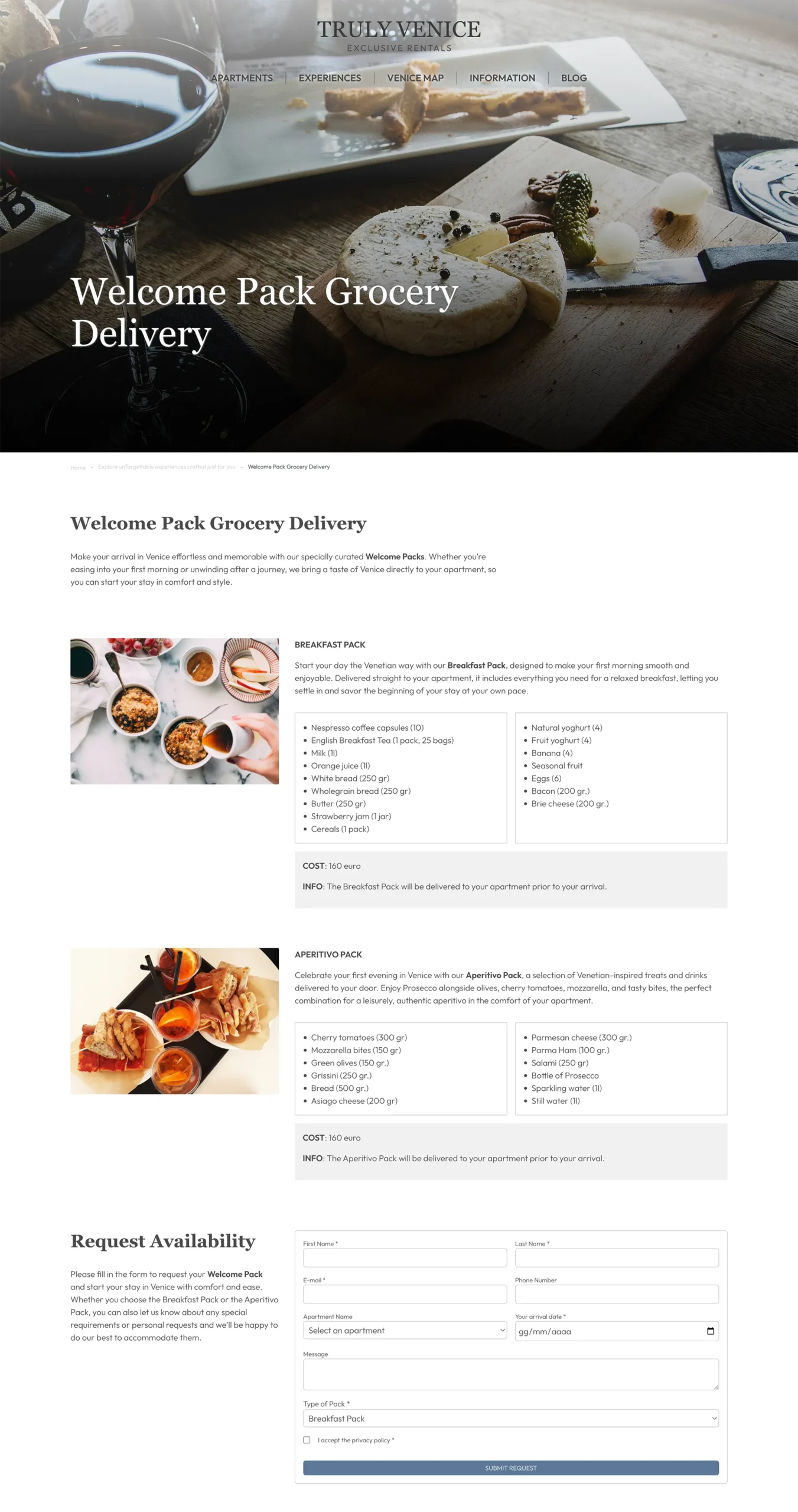 Dal punto di vista operativo, il back-office del sito riflette esattamente queste scelte: il team di Truly Venice può vedere tutte le preferenze degli ospiti, le prenotazioni di servizi, gli orari di arrivo e gli stati dei pagamenti in un unico posto. Questo elimina la necessità di scambi di email o file esterni e consente di organizzare pulizie, transfer e altri servizi in modo molto più efficiente.
